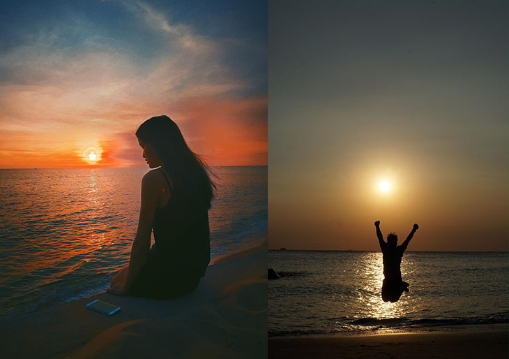 Thông thường chúng mình thường cố gắng nhất có thể để bắt trọn được ánh sáng cũng như khung cảnh biển một cách rõ nét nhất. Tuy nhiên nếu trời đã bắt đầu xế chiều hoặc hoàng hôn, khi mà ánh sáng chẳng còn đủ thì kiểu chụp ngược sáng cũng được xem là một trong những gợi ý hay ho để các bạn sáng tạo những tấm hình chụp đẹp.