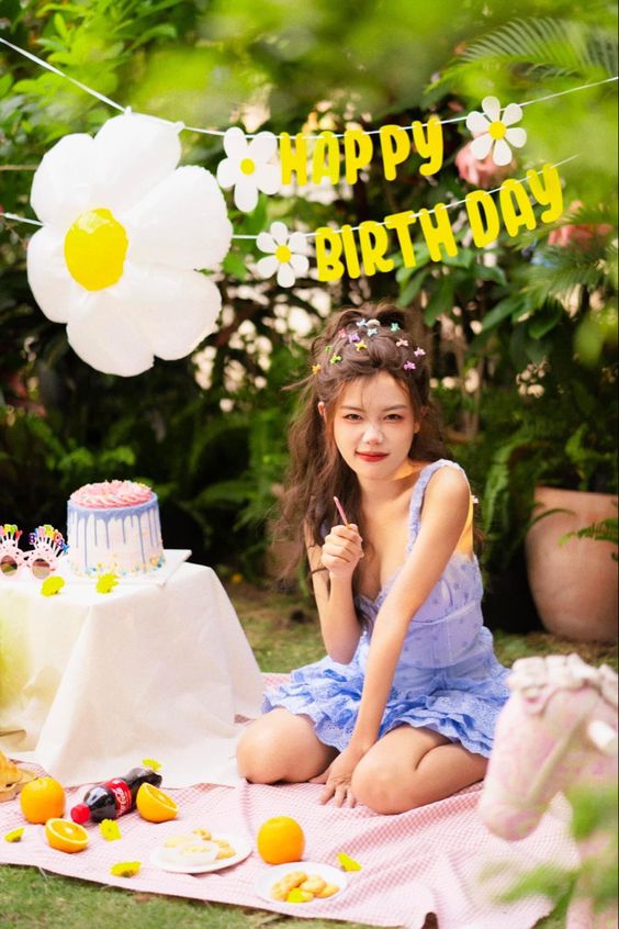 Nếu bạn cũng dự định có một buổi dã ngoại nhỏ vào ngày sinh nhật của mình thì có thể lựa chọn một không gian xanh mát như công viên, vườn hoa hoặc bờ sông. Nên chọn những địa điểm có nhiều cây xanh, hoa lá để tạo khung cảnh tự nhiên và tươi tắn cho bức ảnh. Bạn cũng có thể trang trí thêm khăn trải bàn, nến, hoa, bong bóng… với tông màu tươi sáng để tăng thêm sự rực rỡ cho bữa tiệc.