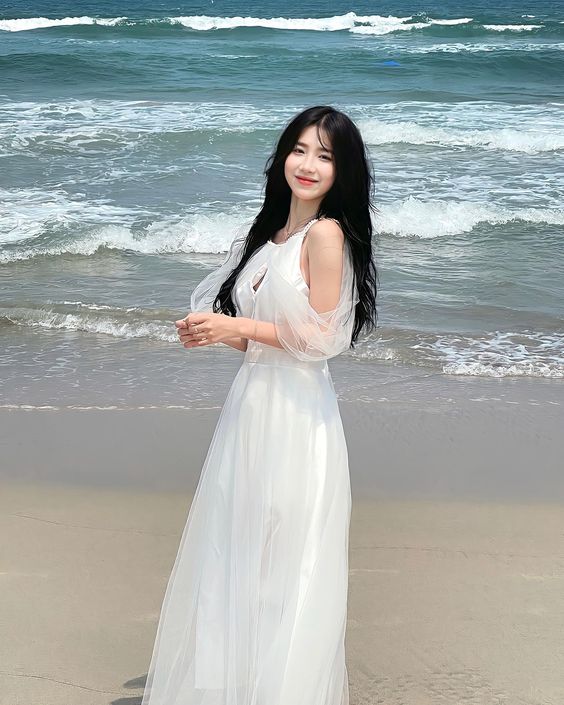 Với concept này, bạn có thể lựa chọn những trang phục nhẹ nhàng, bay bổng như váy maxi, đầm xòe,… với tông màu pastel hoặc trắng để phù hợp với khung cảnh lãng mạn của biển cả. Nên Bạn sử dụng thêm các phụ kiện như mũ rộng vành, khăn voan,… để tạo điểm nhấn cho trang phục.