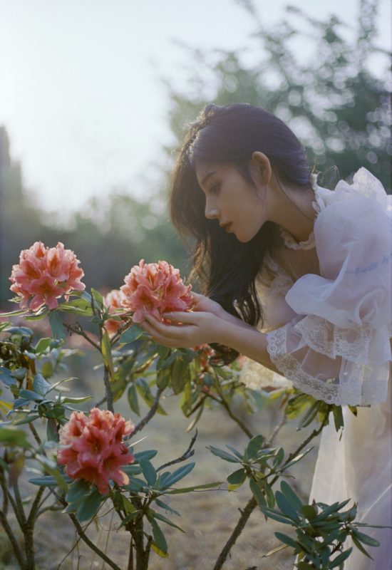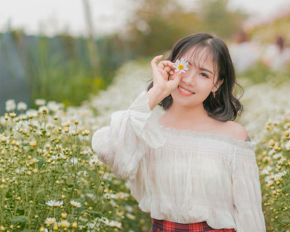 Những tín đồ sống ảo chắc chắn không thể bỏ qua cách tạo dáng dùng hoa che mắt. Bạn chỉ cần kẹp một bông hoa vào giữa hai ngón tay và che một bên mắt sau đó chụp chế độ chân dung. Lúc này, toàn bộ bức ảnh sẽ tập trung vào “cửa sổ tâm hồn”. Do vậy, bạn hãy cố gắng thể hiện thật tốt nét diễn của ánh mắt nhé.