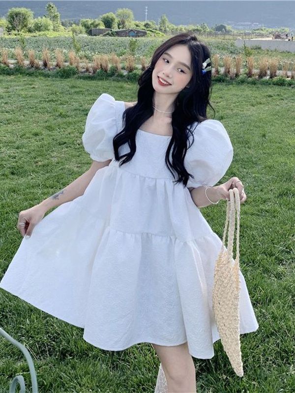 4. Váy trắng babydoll hack tuổi cực tốt
